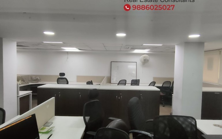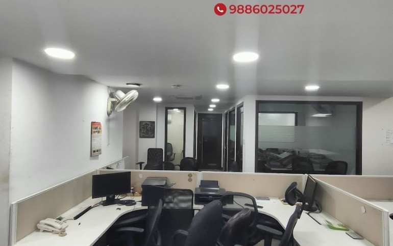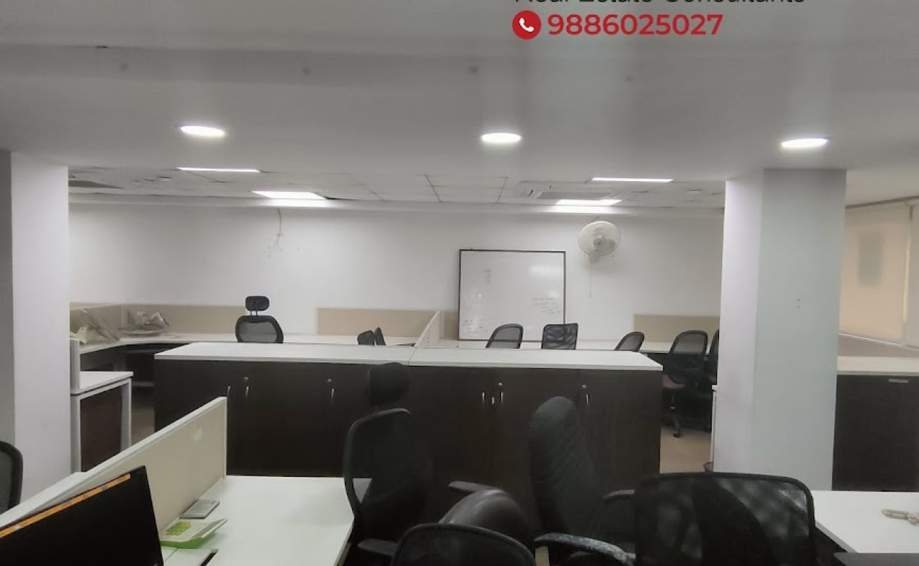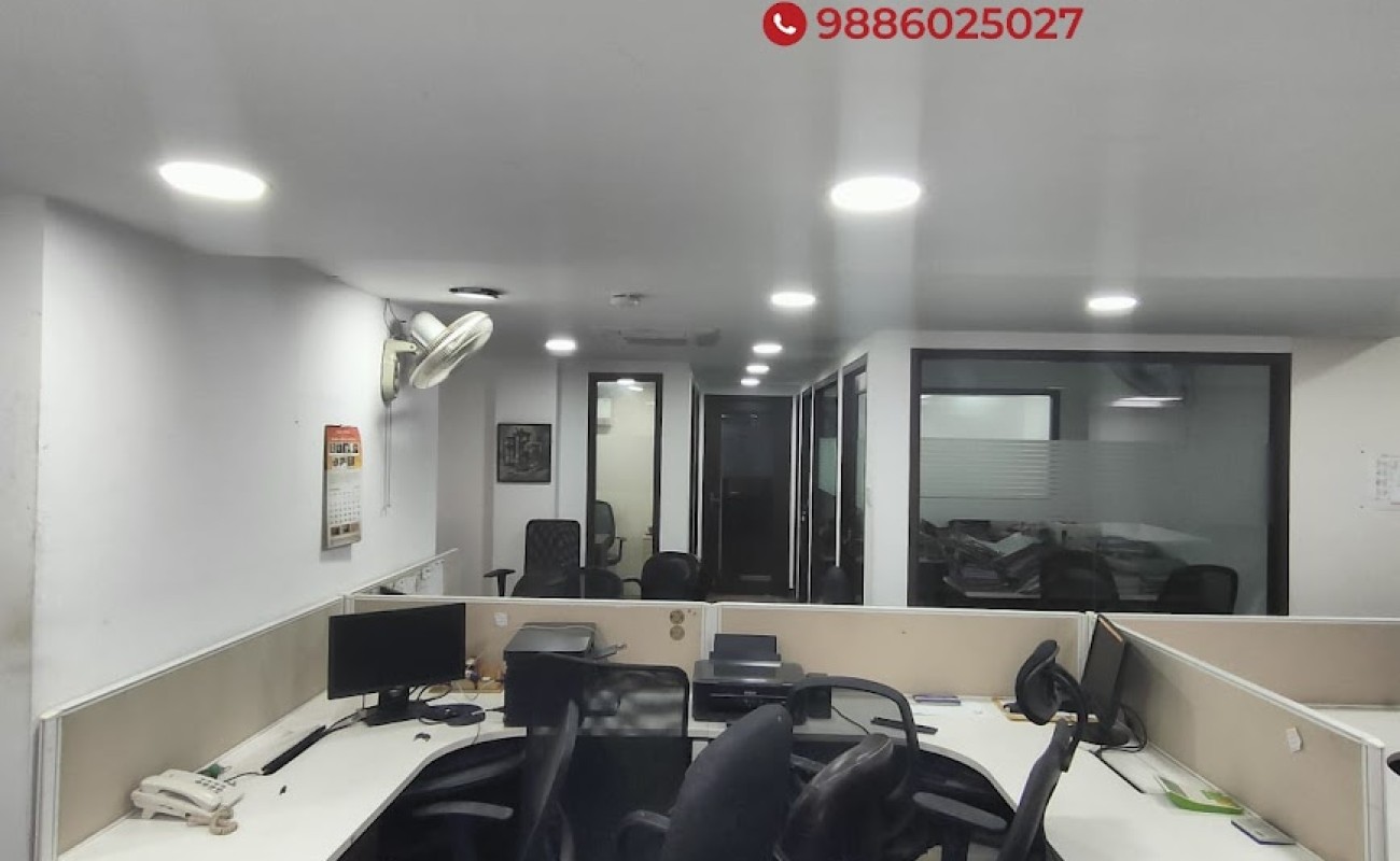 Office unit in a commercial complex, 2nd floor, Space offered 2000 Sq.Ft, 32 workstations, 1 M.D cabin, 1 Manager cabin, 1 Conference Room, 2 Rest rooms (Toilets M/F),2 Car park & 2 Wheeler parking, Power backup, Lift, Security CCTV camera.