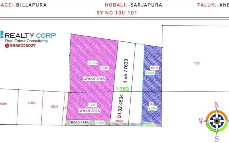 1.37 Acre (59,677 Sq.Ft) Land For Sale In Sarjapura Billapura.