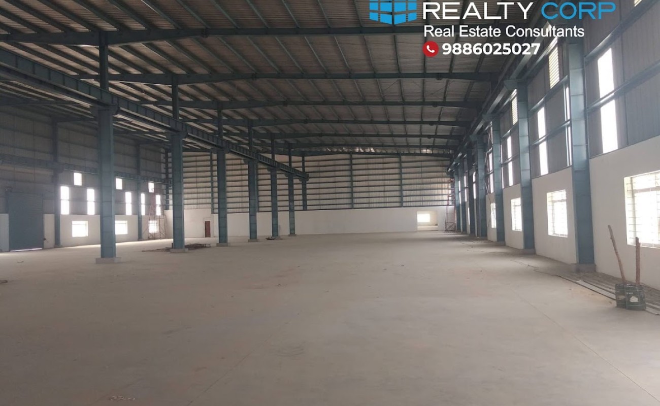 Secure a strategic advantage for your operations with this exceptional 6-year-old, Grade A warehouse, now available for rent in the thriving Narasapura Industrial Area. Situated on 2 acres of KIADB Red Zone land, this east-facing facility offers an ideal setting for logistics, manufacturing, and distribution businesses.
